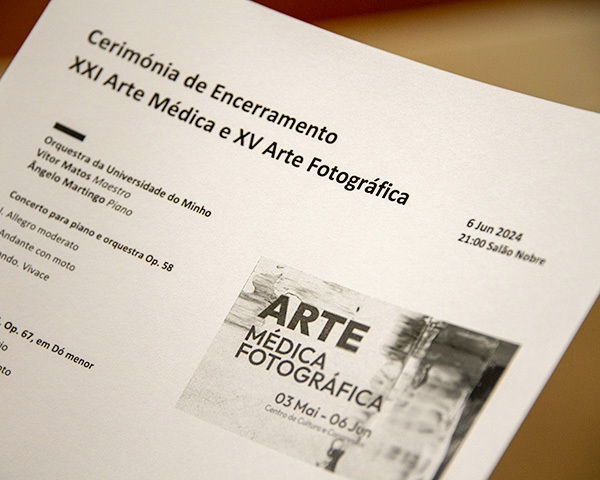 | Chegou ao fim mais uma edição das exposições Arte Médica e Arte Fotográfica, que se revelou um sucesso pela qualidade e variedade das obras apresentadas. A Cerimónia de Encerramento, que aconteceu no Salão Nobre da SRNOM, no dia 6 de junho, ficou marcada pela simbólica entrega de medalhas aos participantes. A iniciativa contou ainda com um concerto introdutório da Orquestra da Universidade do Minho, coordenado pelos músicos Vítor Matos e Ângelo Martingo. |