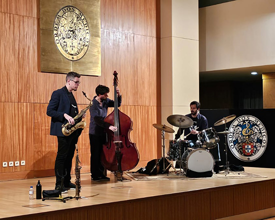 | Desidério Lázaro é considerado um dos mais estimulantes saxofonistas portugueses e inaugurou o 14º Ciclo de Jazz na Ordem. Numa formação em trio, acompanhado por André Rosinha no contrabaixo e João Sousa na bateria, apresentou o seu 10º álbum, “MicrUs”. O concerto aconteceu na noite de 28 de fevereiro, no Salão Nobre da SRNOM e foi um sucesso. |