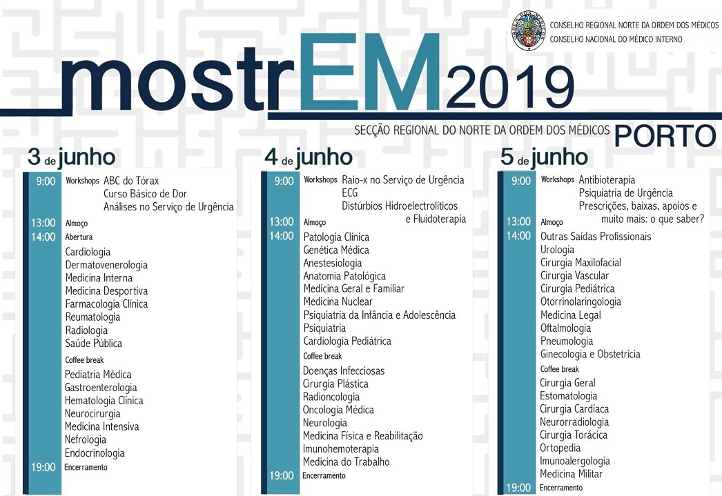 O mostrEM Norte 2019 irá decorrer na Secção Regional do Norte da Ordem dos Médicos (Porto), de 3 a 5 de Junho.