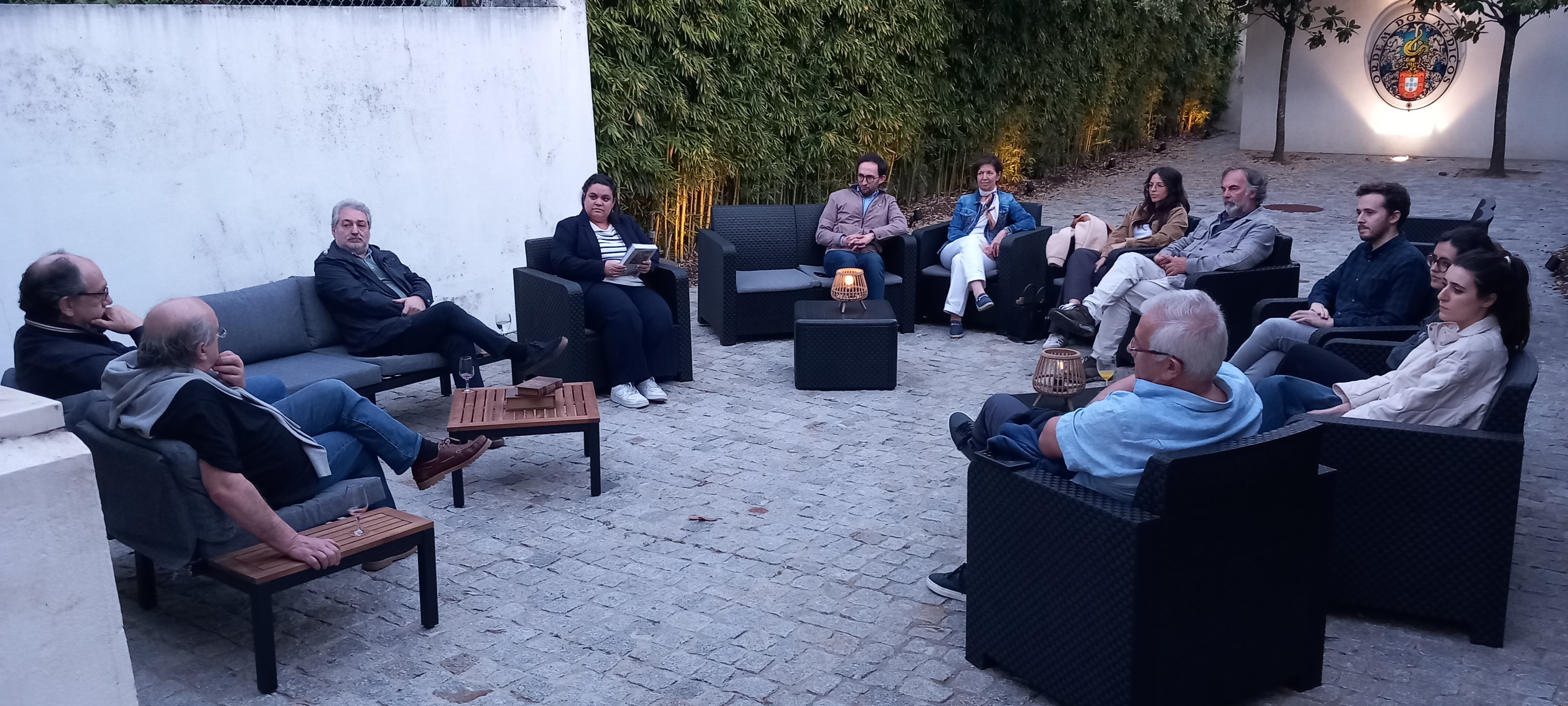 No passado dia 1 de Abril, sob o sugestivo título “Não é mentira.” iniciamos uma parceria com uma corajosa livraria alfarrabista da cidade, de nome “Era outra vez”, promovendo encontros literários ao fim da tarde, na nossa sede, entre as 19.30 e as 21.00 horas. Sem sabermos exatamente quem aderiria a este desafio, encontramo-nos, com presenças acima das expectativas, para uma experiência nova. A Comissão de Internos da ULSAM colaborou, divulgou a iniciativa e o Conselho Sub-regional organizou o evento que decorreu no espaço aberto do pátio, em ambiente relaxado, acompanhado por um cálice de vinho do porto ou um café que ajudaram a contrariar o ar fresco que ainda se faz sentir nesta altura do ano. A Viviana, livreira, leu um excerto de um texto oculto, sem autor identificado e todos o interpretaram, cada um com a sua sensibilidade, promovendo uma conversa muito interessante entre os presentes, que se permitiram no fim da sessão sugerir o nome do autor do livro, nome que se veio a confirmar quando foi removida a capa de ocultação e revelada a verdadeira com o seu nome e o respetivo título. “O Mundo de Sofia” do norueguês Jostein Gaardner. Ficou agendado outro encontro para 7 de maio, anunciado pelo magnifico cartaz cujo design, só por si, é motivo de entusiamo, tal o elevado sentido da beleza estética do mesmo.